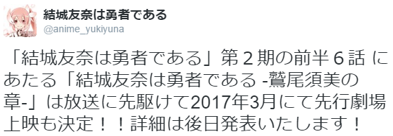 『結城友奈は勇者である』2期が制作決定!2017年3月に先行劇場上映も